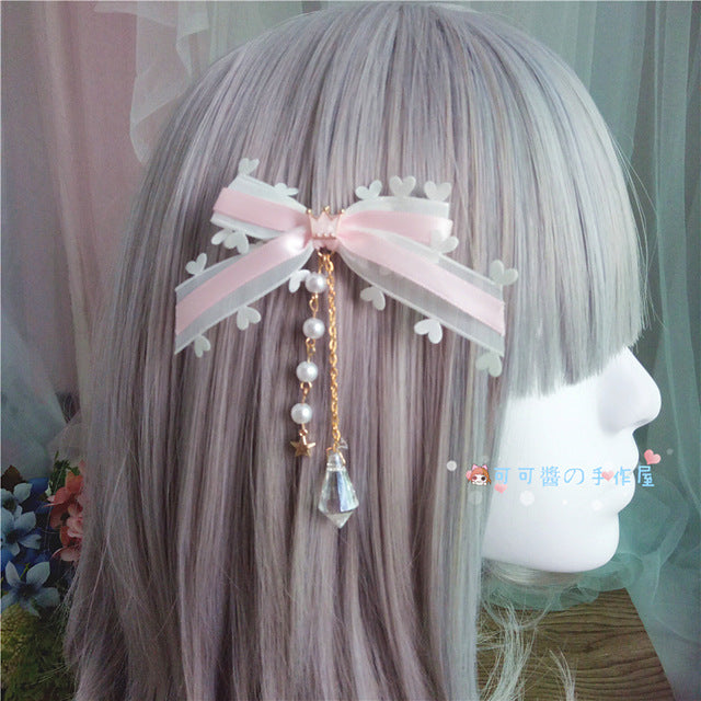 cute sweet Japanese and Korean family pink side hair clip ancient style Han clothing chain girl hair clip lolita headpiece